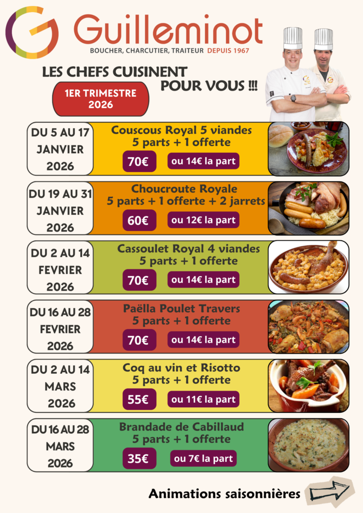 GUILLEMINOT : boucher, charcutier et traiteur depuis 1967.